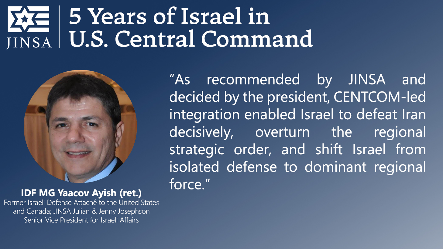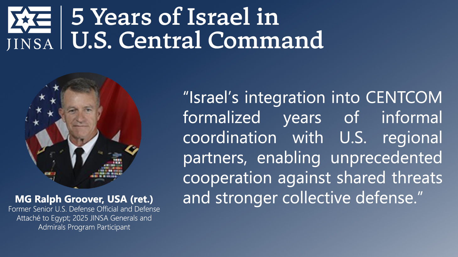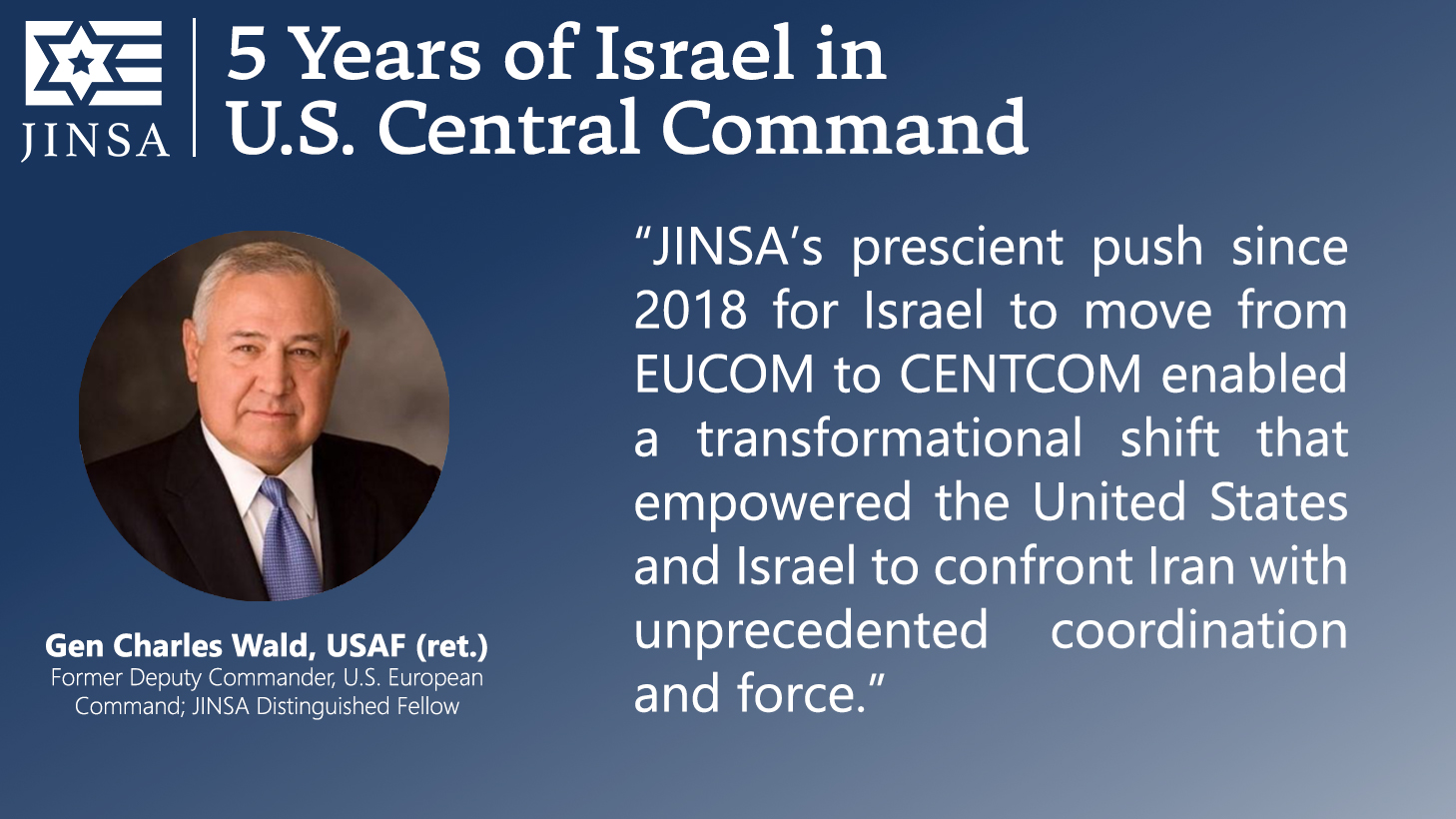 Today marks the fifth anniversary of President Donald Trump’s January 15, 2021, decision to shift Israel from the area of responsibility of U.S. European Command (EUCOM) to that of U.S. Central Command (CENTCOM), as first recommended by JINSA in 2018. JINSA then raised it more intensely in 2020, believing it should be the next step following the Abraham Accords. As the Wall Street Journal recognized at the time, immediately after President Trump’s decision, JINSA was the only organization promoting this move.