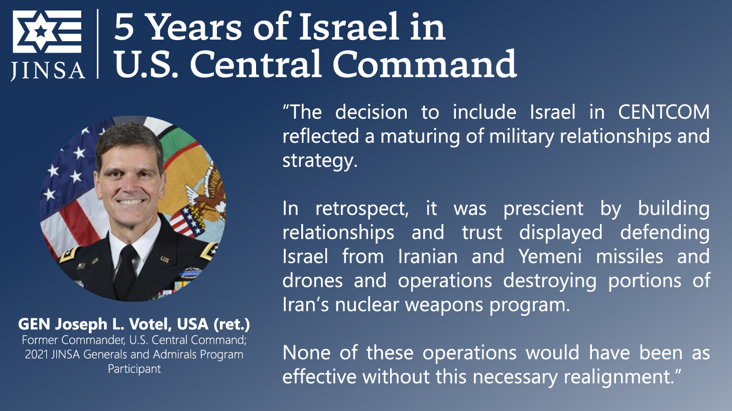 Please see below for quotes from retired U.S. and Israeli generals and admirals on the importance of this move: