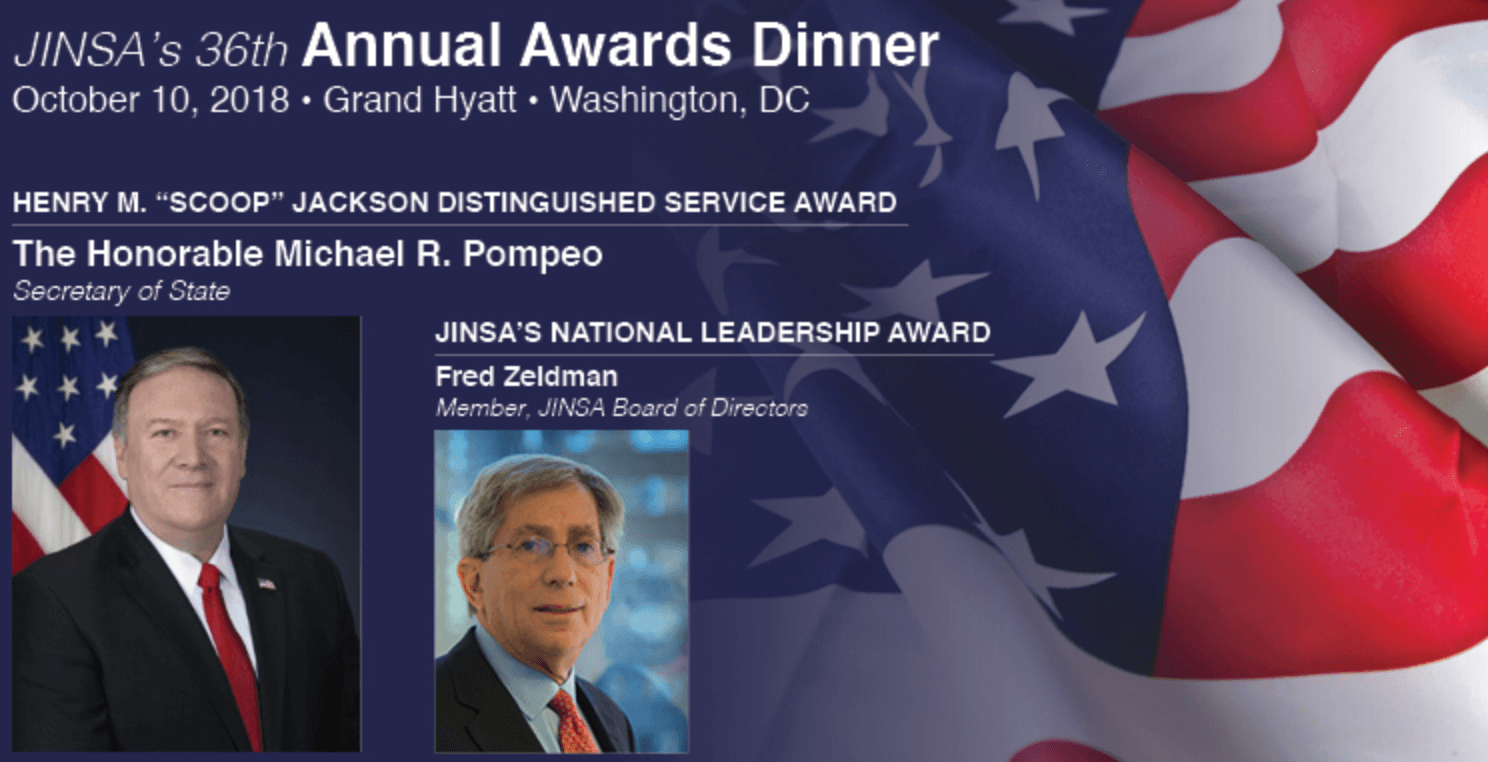 Mr. Zeidman, a member of JINSA’s Board of Directors, is being honored for his strong commitment to advancing JINSA’s mission of promoting a strong U.S. national security and robust U.S.-Israel security relationship. Chairman of Gordian Group, Fred is the Chairman Emeritus of the United States Holocaust Memorial Council, Emeritus National Campaign Chairman of Israel Bonds, Chairman of Council for a Secure America, and a widely respected civil and business leader.